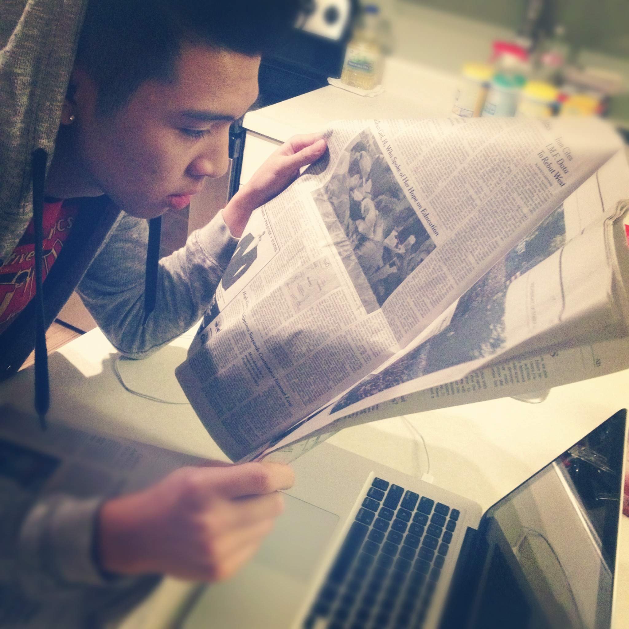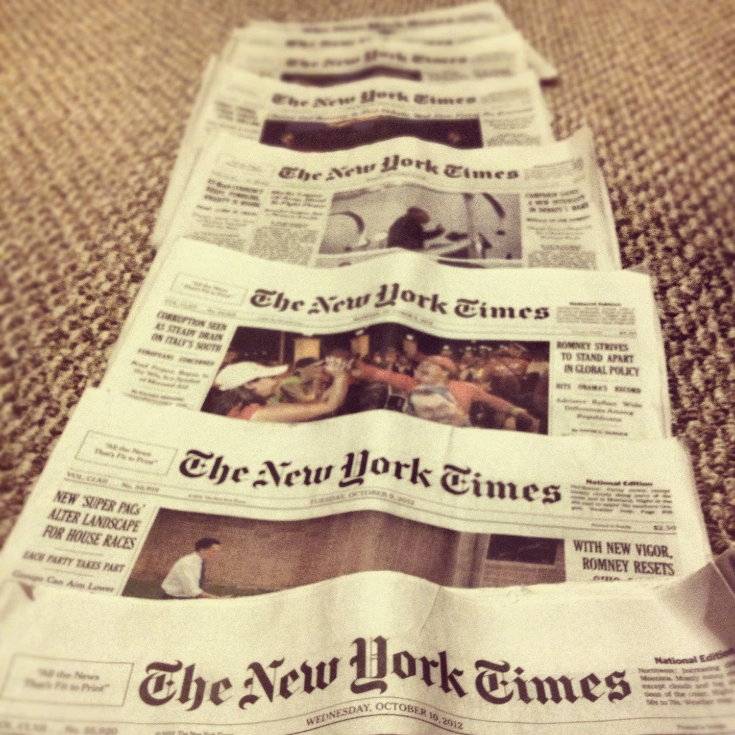 Today we texted a little back and forth, and I learned that Dezmond has read each of the nine newspapers he has received so far. (That’s better than my average!) He also reports that the Times helps him “get [his] reading in” and improves his vocabulary. (I’ve always liked the paper’s verbs.)