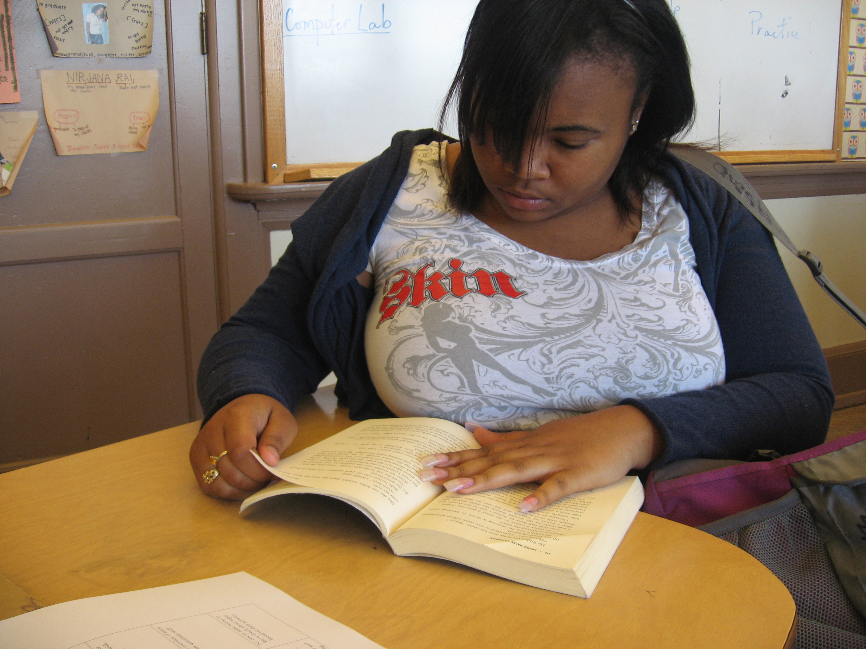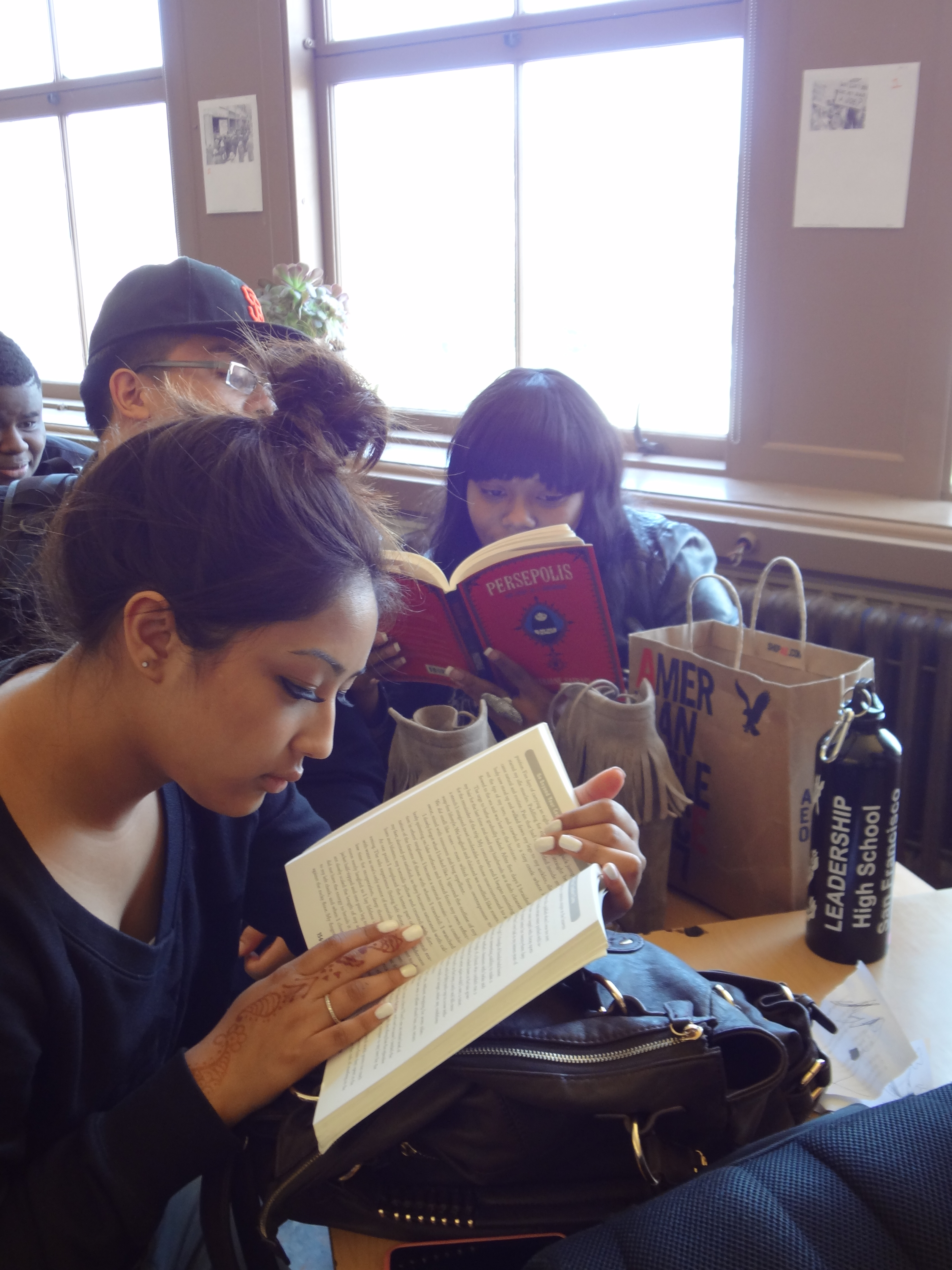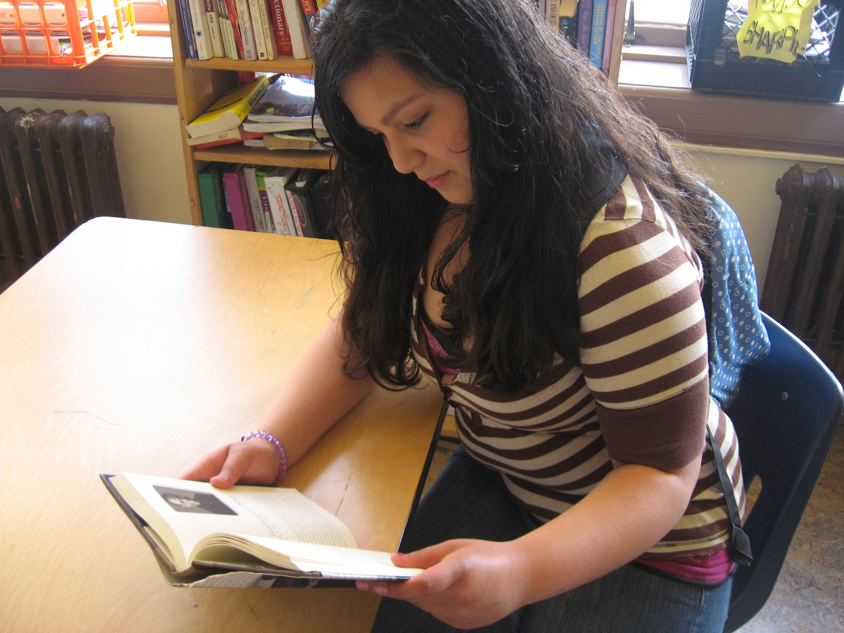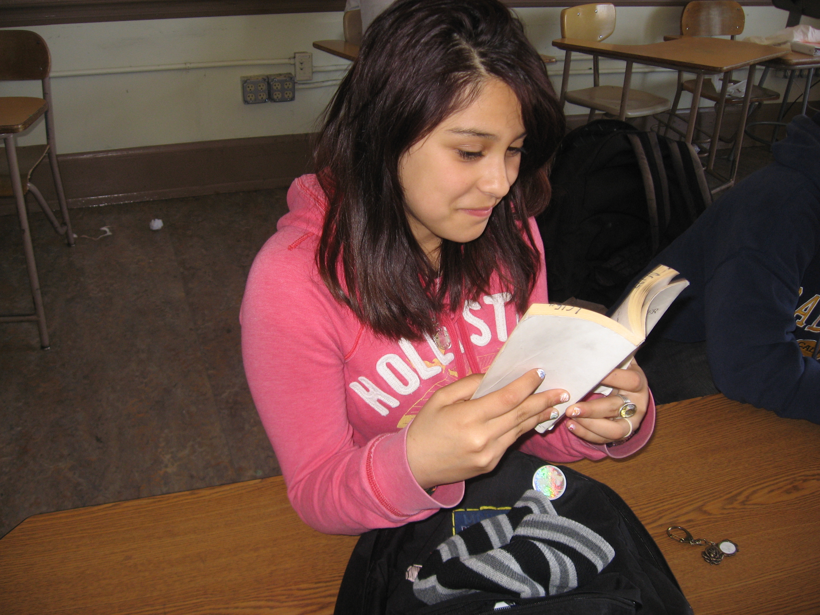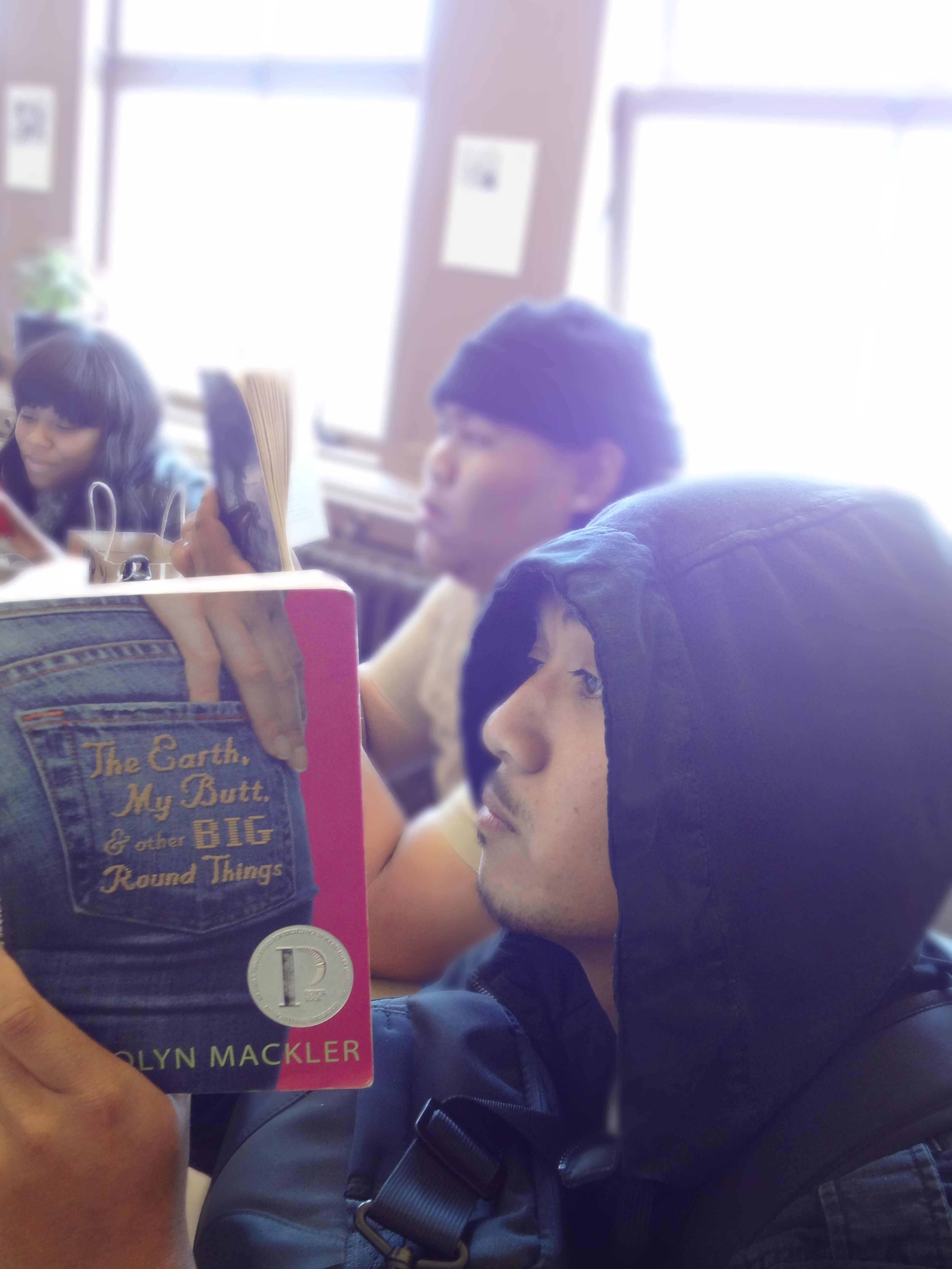 But if you’re not convinced, here are a few photos of my students reading real, actual, physical books. Full disclosure: Some of these photos are of former students, and it’s entirely possible that they’ve migrated completely over to e-readers since I taught them. But I don’t think so!