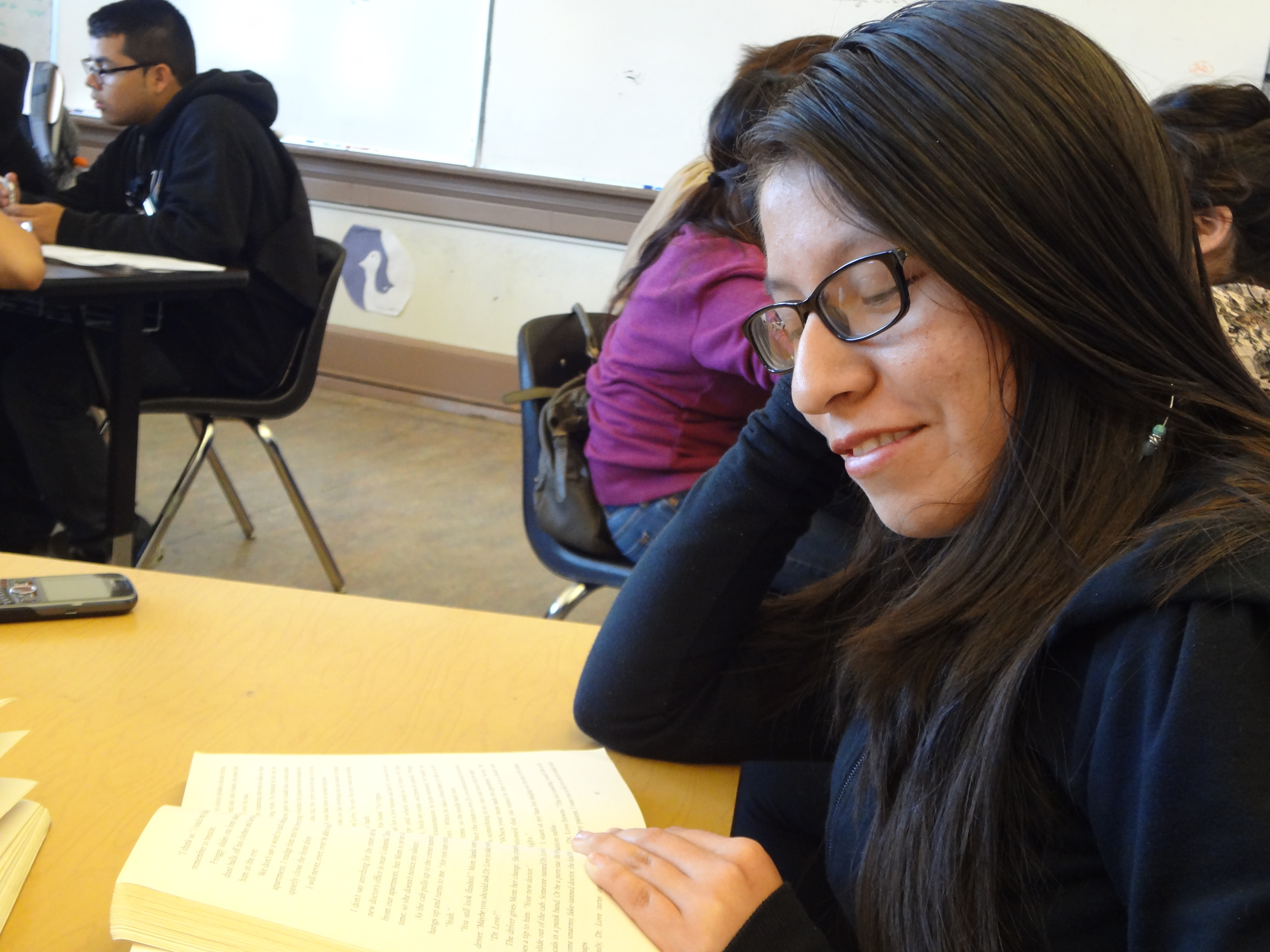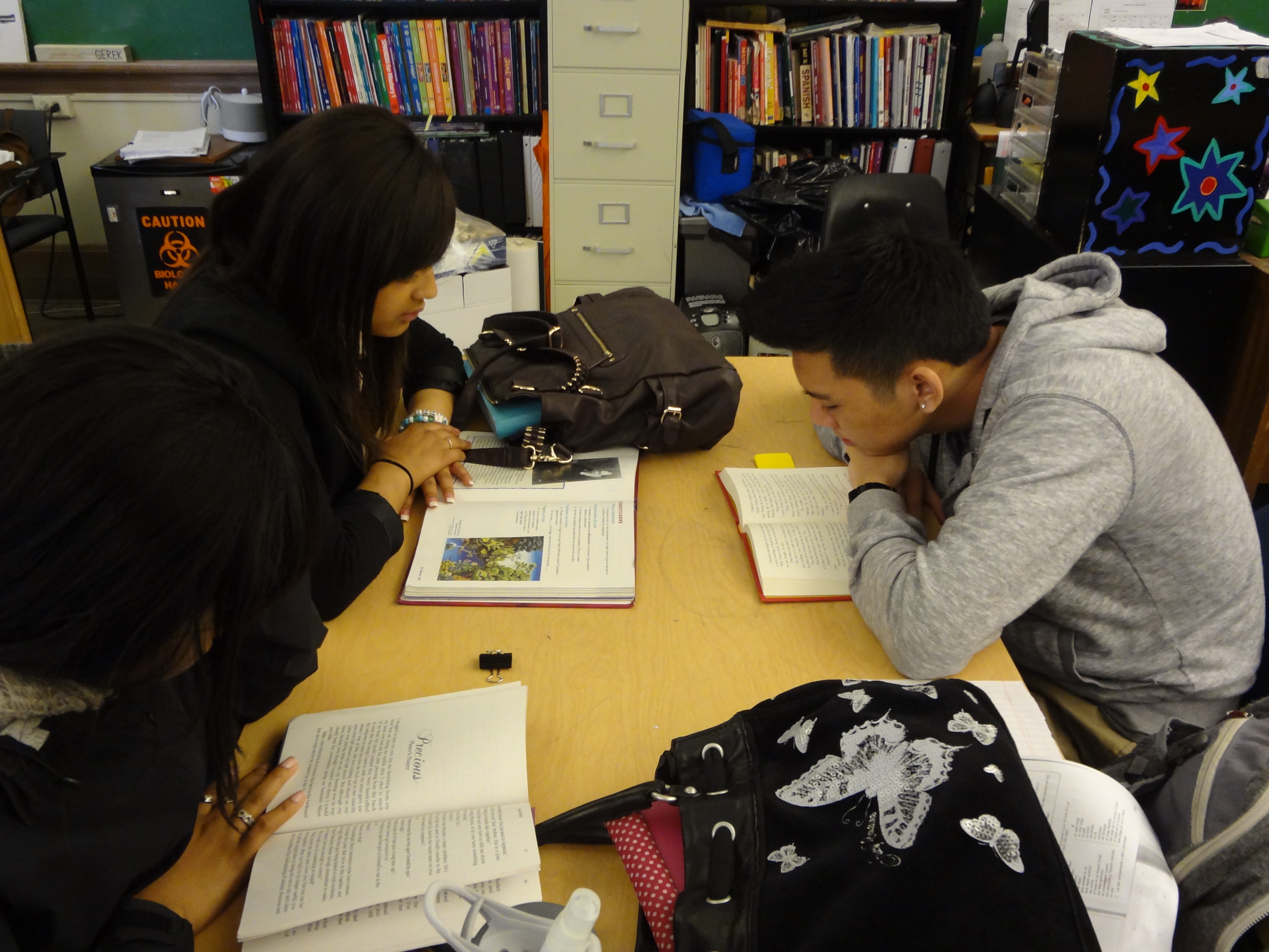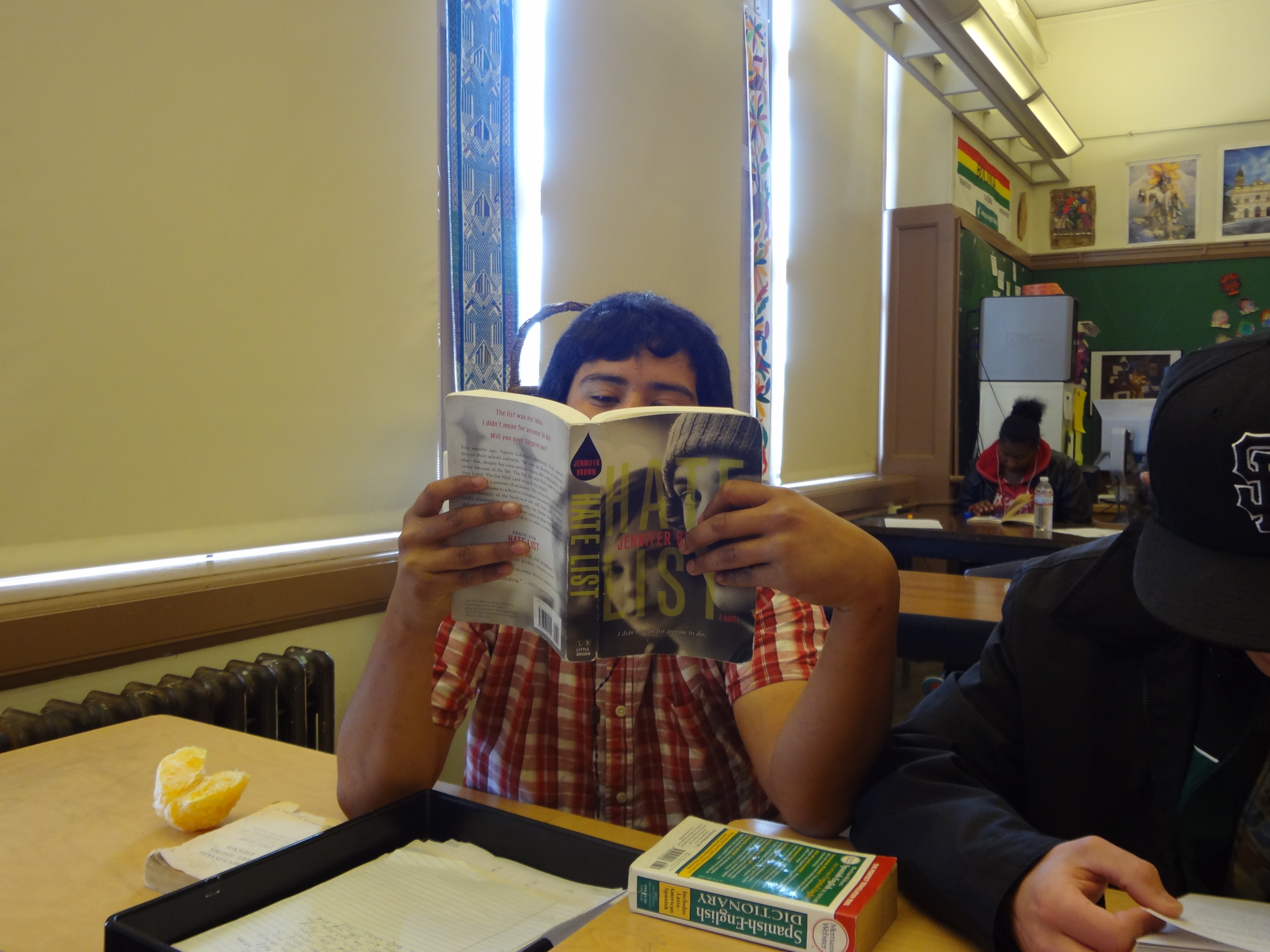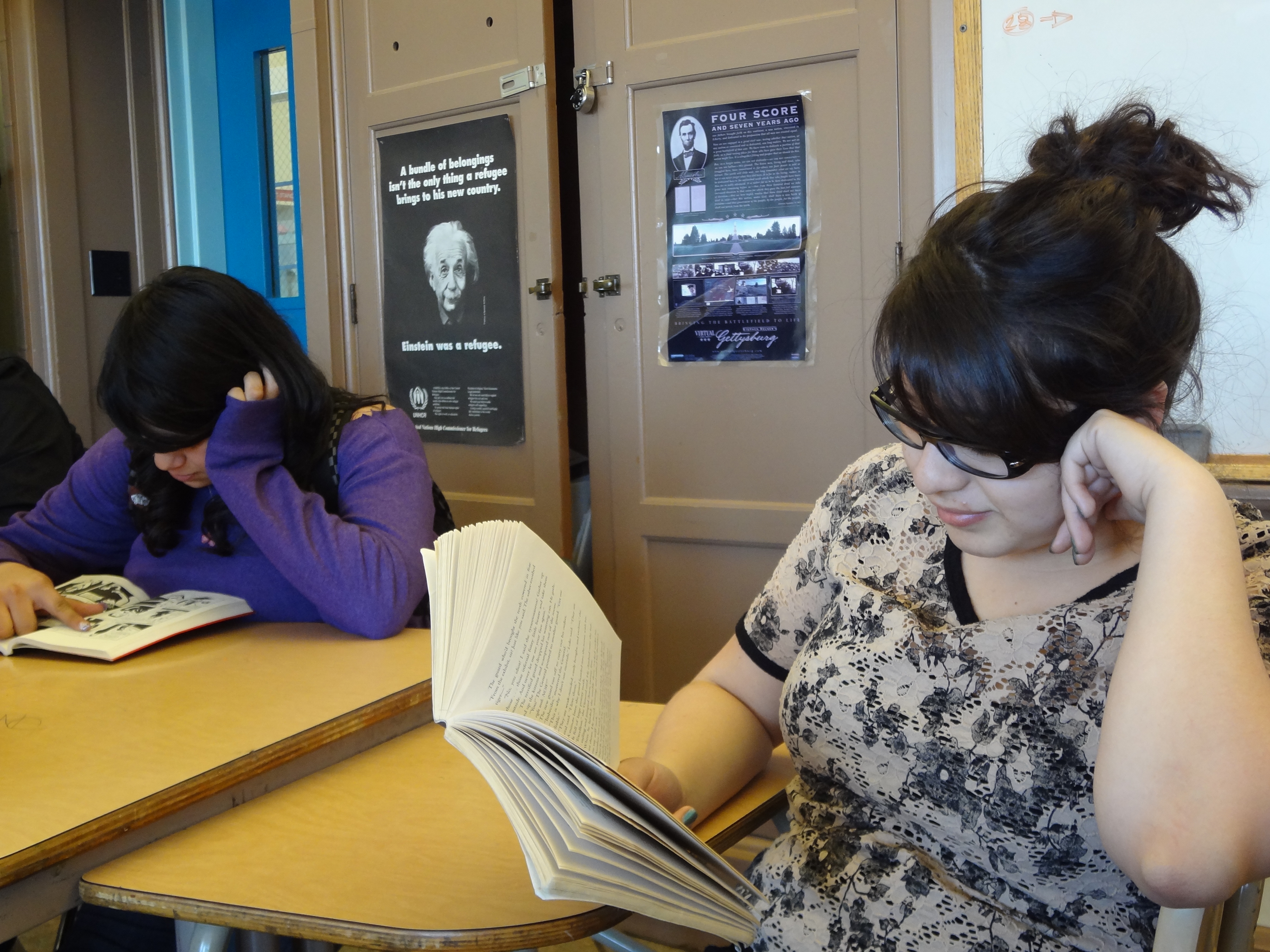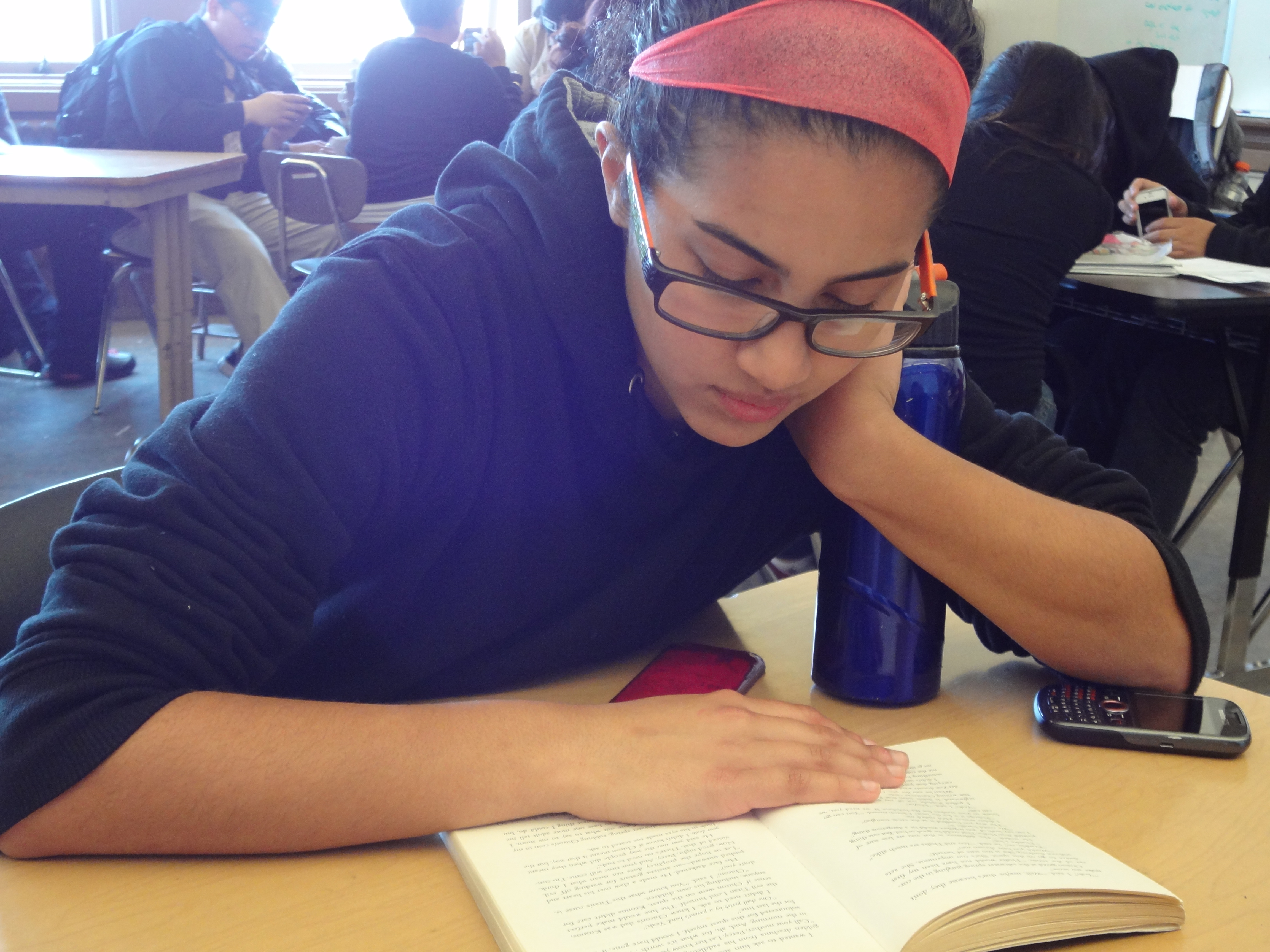 But if you’re not convinced, here are a few photos of my students reading real, actual, physical books. Full disclosure: Some of these photos are of former students, and it’s entirely possible that they’ve migrated completely over to e-readers since I taught them. But I don’t think so!