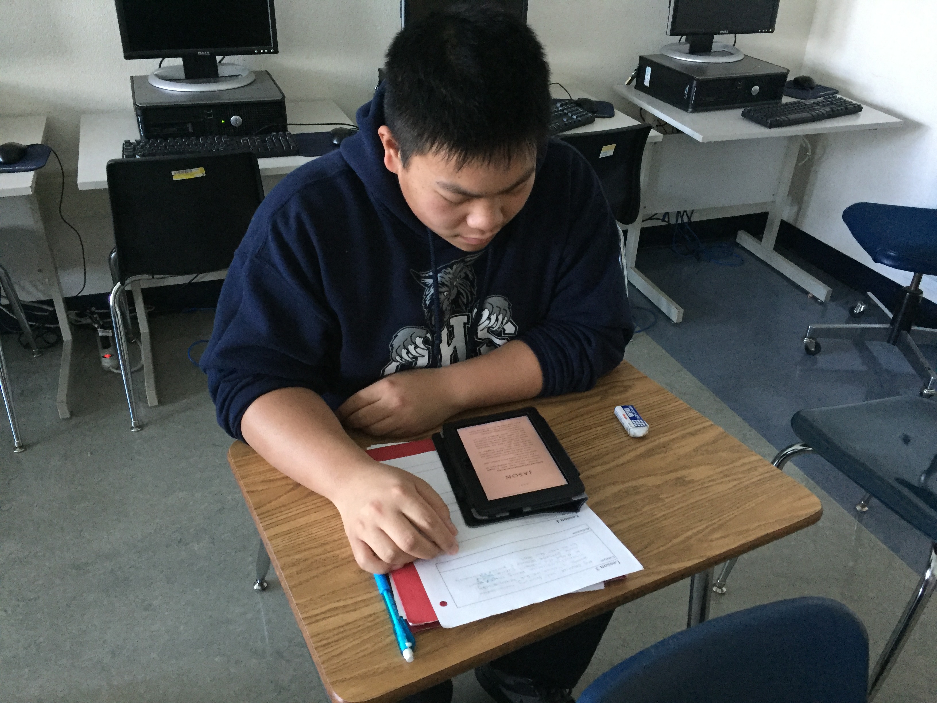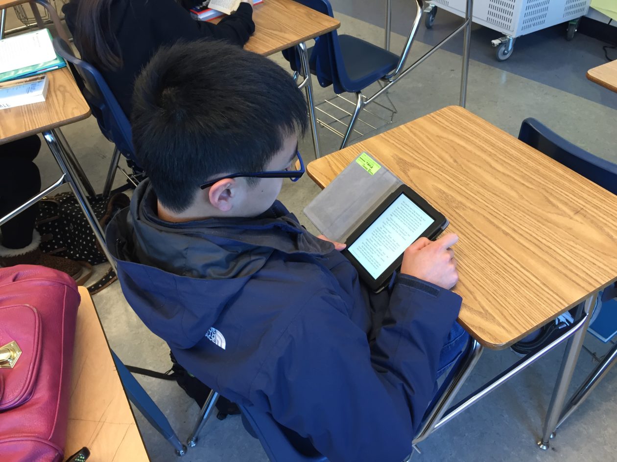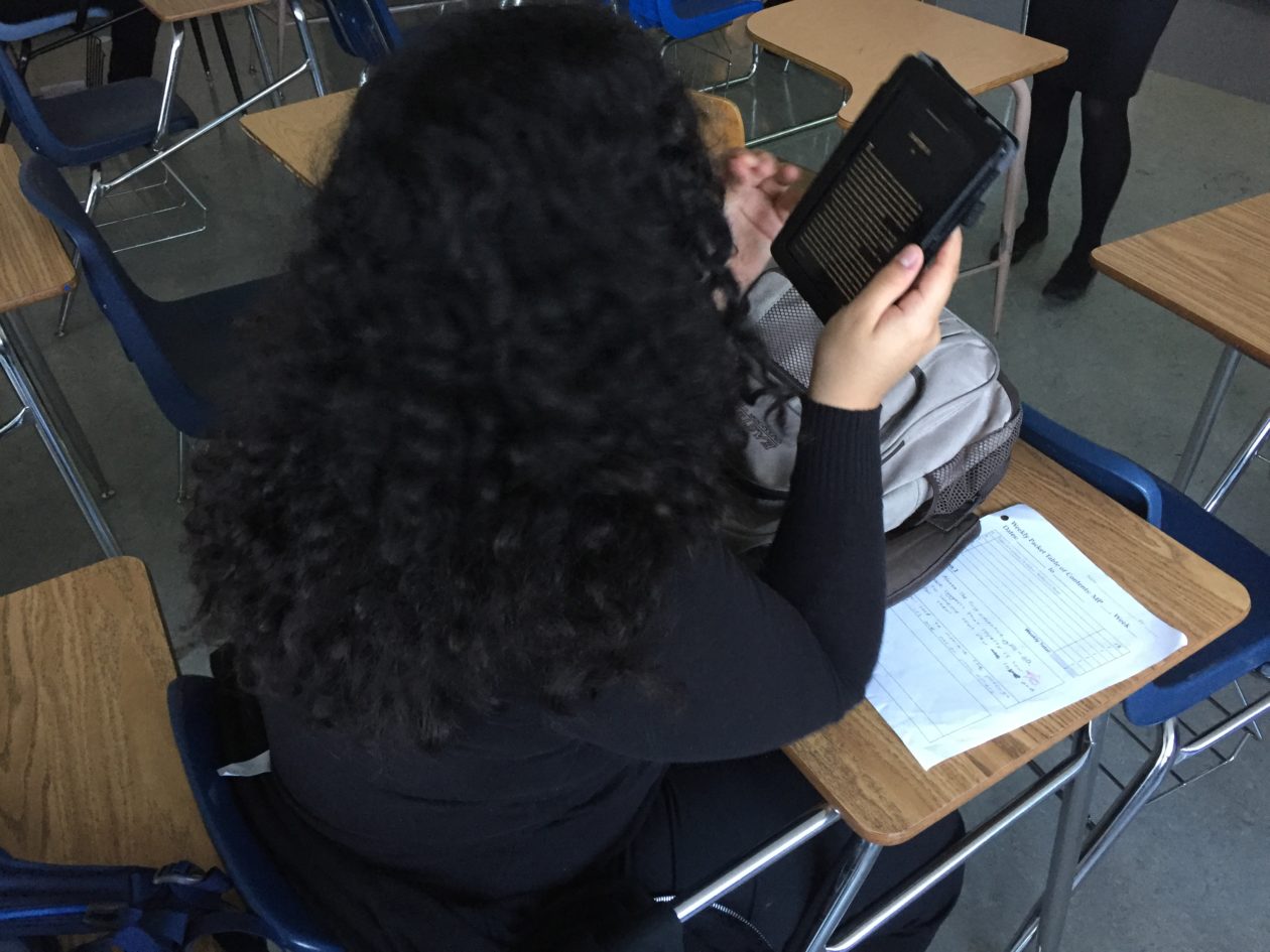 Teacher Lara (Oakland, CA) sent me a few photos today of more happy students reading on their Kindles — especially during lunch and after school.