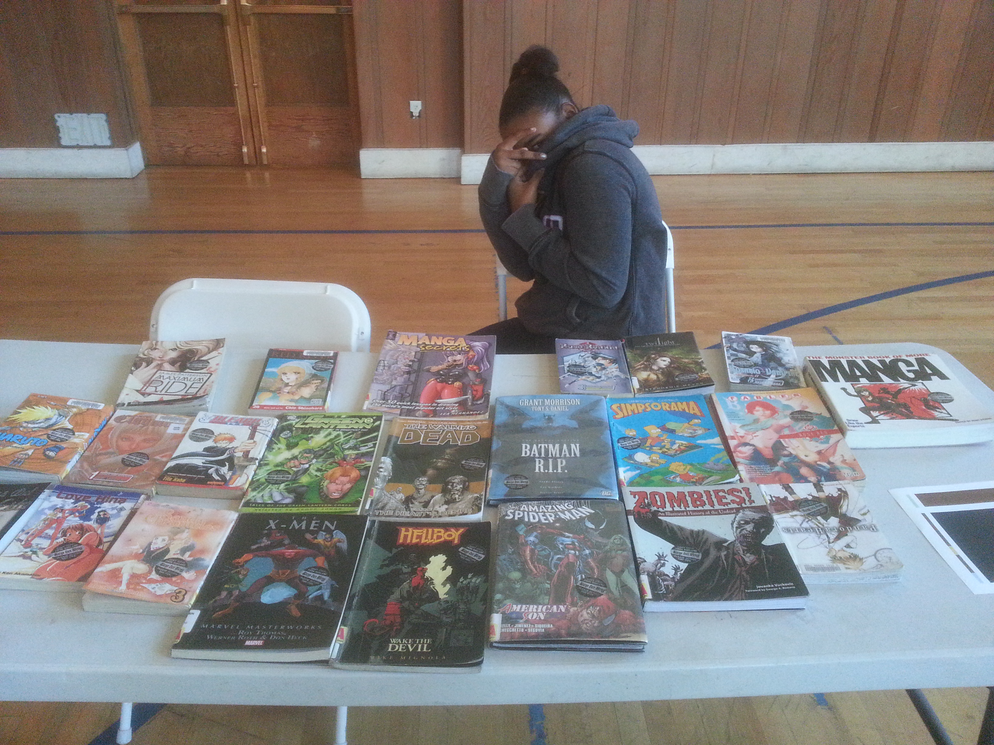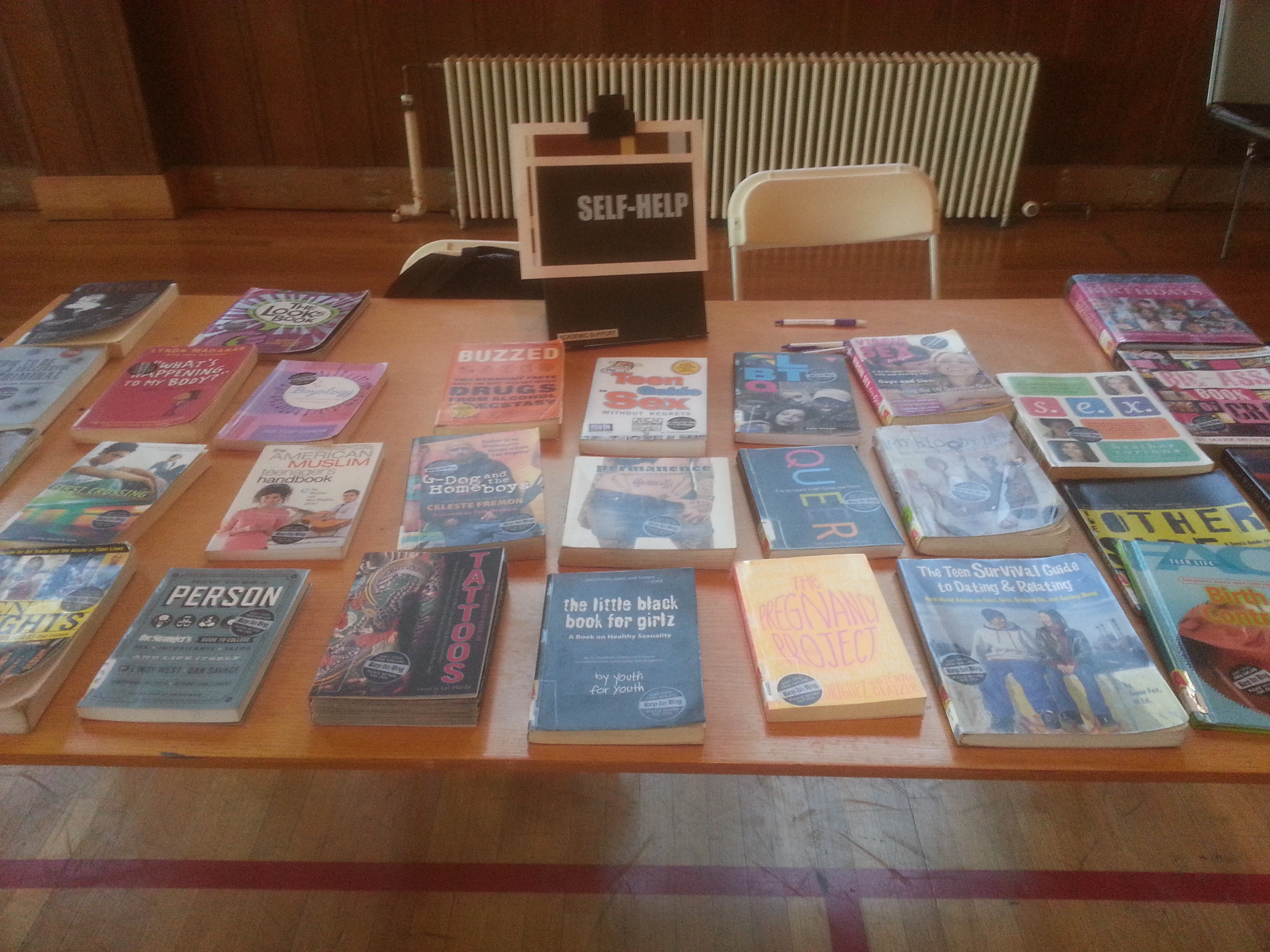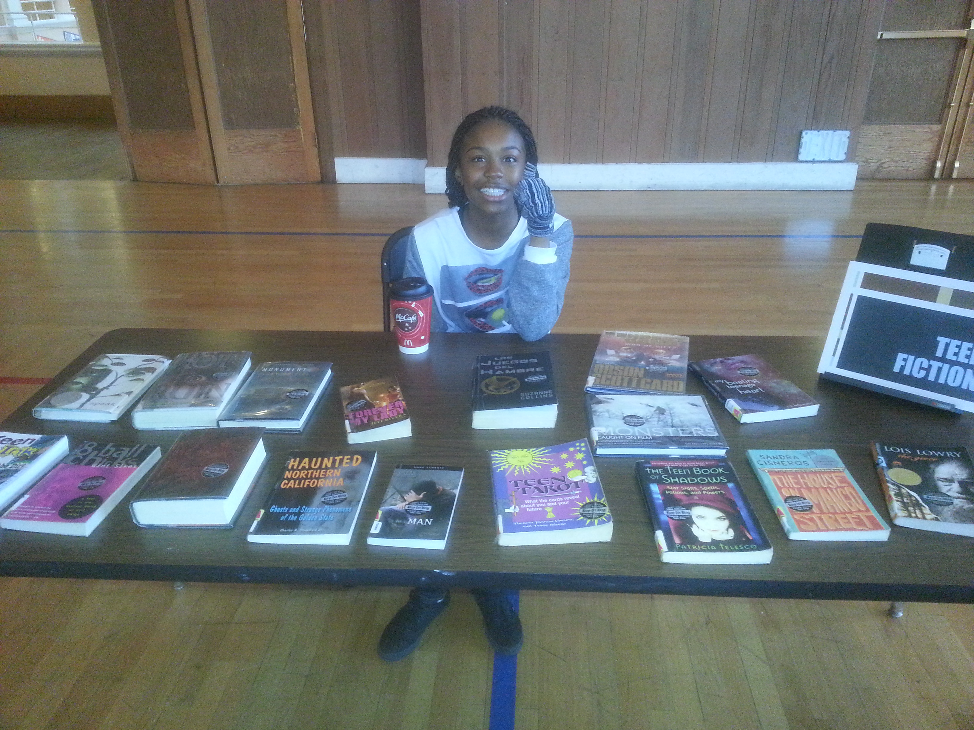 It turns out, no, it didn’t take a lot of work. Actually, it was pretty easy, thanks to the wonderful teen librarians at the Oakland Public Library. The vice principal and I called up Brian Boies, the lead TeenZone librarian, and his staff pulled 150 high-interest titles (both fiction and nonfiction) for us to borrow for the book fair. I drove over in my Honda Civic and loaded the back seat with mountains of books.